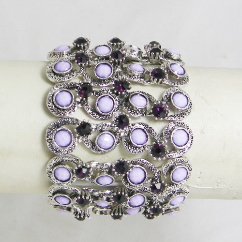 514152-116 Purple Rhinestone Stretch bracelet in Silver