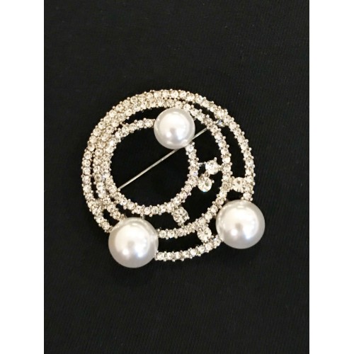 515095 Crystal Silver and Pearl Brooch